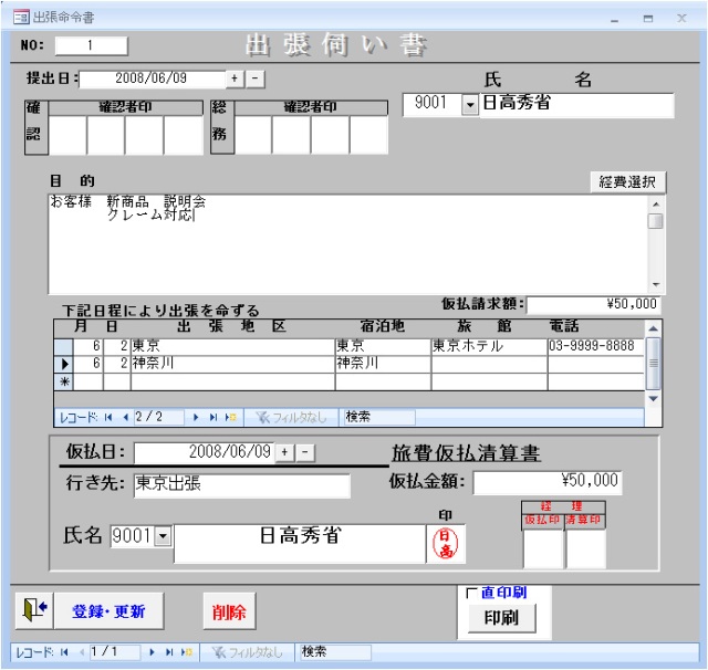 - 出張伺い書