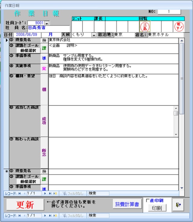 ※日報の入力した内容を、担当上司が、確認したかが、部下も上司も分かる双方向で伝達できる機能が付いています。
