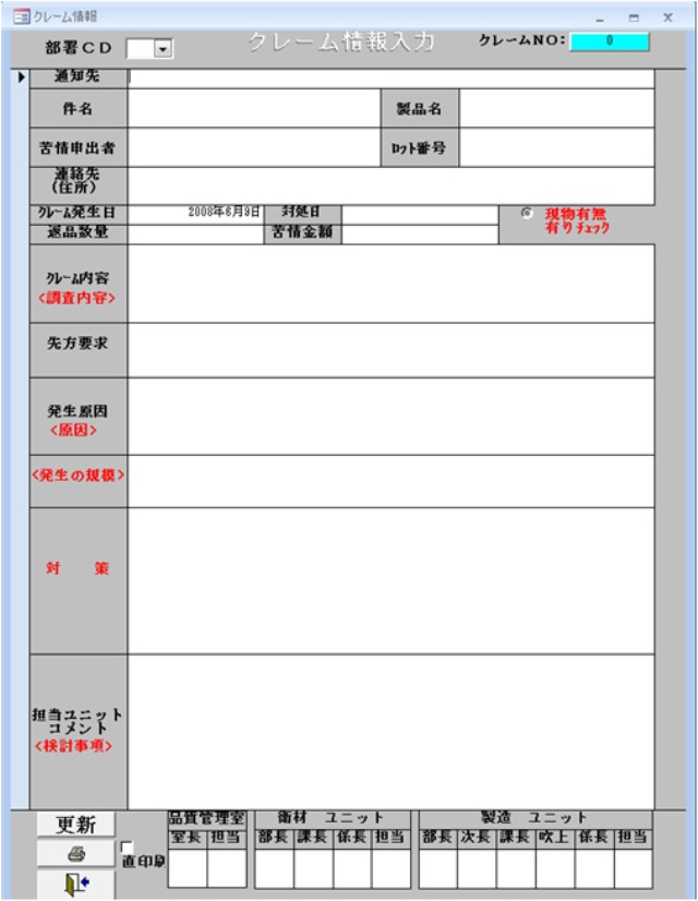 - クレーム情報入力