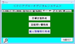 Microsoft Accessをベースに開発しておりますので、オフイスでご利用のWwindows XP/Vista/7/8パソコンに簡単に導入することができます。